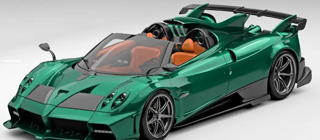 850 hp twin-turbo V12, most extreme road-legal Pagani aero package, open-top ferocity. |
