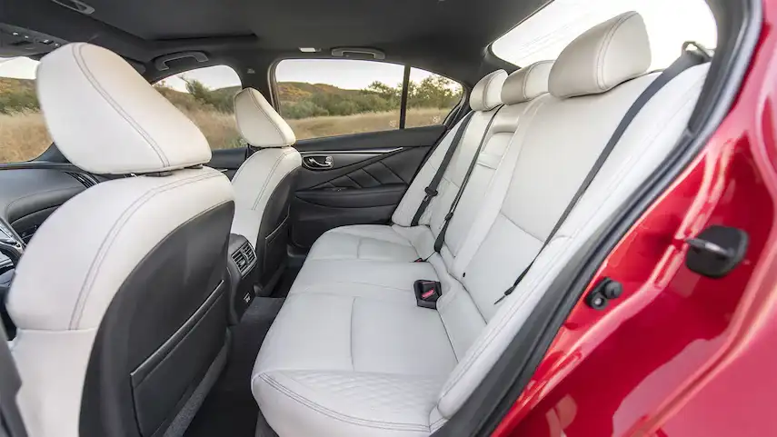 داخل المقصورة الفاخرة لإنفينيتي Q50 لعام 2024، تبرز الرفاهية من خلال استخدام الجلد عالي الجودة في تغطية الأبواب والمقاعد ولوحة القيادة. يتوسط الكونسول المركزي الكبير بين المقاعد الأمامية المغطاة بالجلد المطرز، مما يوفر عزلًا متوسطًا عن الضوضاء الخارجية، مما يعزز من راحة الركاب.