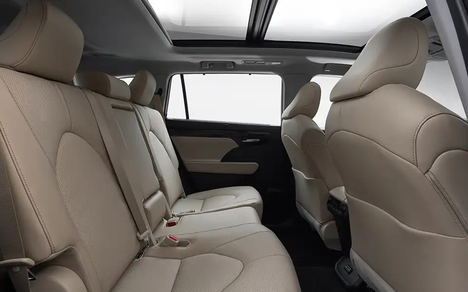 تم التصميم الداخلي لسيارة هايلاندر ليكون عملياً وفاخراً في الوقت نفسه. يوفر تصميم السيارة المكون من 7 مقاعد، مع مقاعد مكسوة بالجلد عالي الجودة، والطرازات الأعلى جودة المجهزة بوظائف الضبط الكهربائي والذاكرة، تجربة ركوب مريحة لكل راكب.
