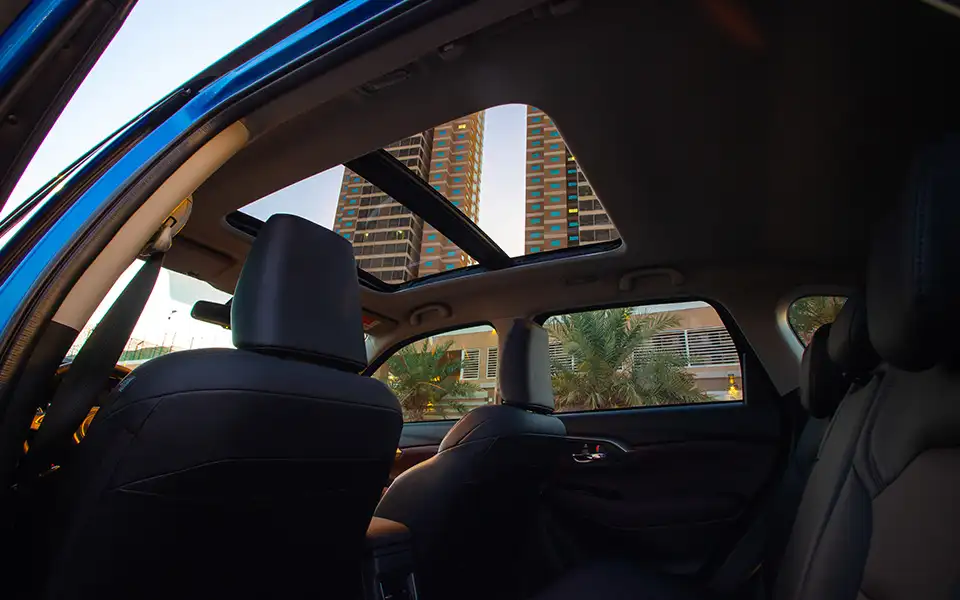 o الإضافات: وظيفة الشحن اللاسلكي وفتحة سقف بانورامية، مما يضيف إحساساً بالتكنولوجيا والفخامة إلى المقصورة الداخلية ويجعل تجربة القيادة أكثر راحة.