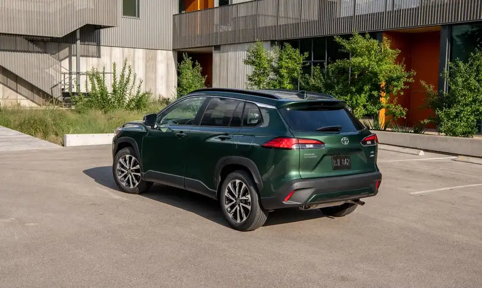 في الجزء الخلفي، تأتي السيارة بعجلات تتراوح بين 17 و18 بوصة، وتزينها مصابيح LED خلفية ذات تصميم حاد. يرتفع المصد الخلفي العالي قليلاً عن الأرض، مما يضفي على السيارة طابعاً عملياً ورياضياً في آن واحد. يجمع التصميم الخارجي بين الشكل الصندوقي وميل خفيف نحو الخلف، ليعكس توازناً بين الأناقة والعملية ويعزز الهوية البصرية لتويوتا كورولا كروس 2024.
