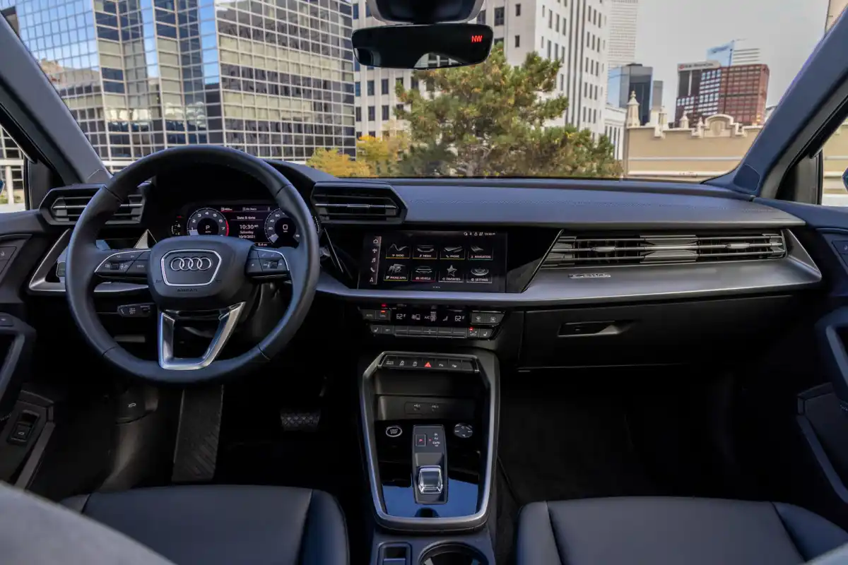 توفر سيدان أودي A3 2024 مقصورة داخلية تتميز بمستوى عالٍ من الرفاهية والفخامة، حيث تنتشر الخامات عالية الجودة مثل الجلود التي تكسو المقاعد وزخارف الأبواب، إلى جانب الكونسول المركزي المزود بتفاصيل كرومية أنيقة. تتميز لوحة القيادة بتطريزات فاخرة، مع إمكانية اختيار مقاعد رياضية فاخرة تتمتع بخيوط تطريز بارزة وكسوة جلدية مبطنة، مما يضمن مساحة جلوس مريحة وواسعة في المقدمة.