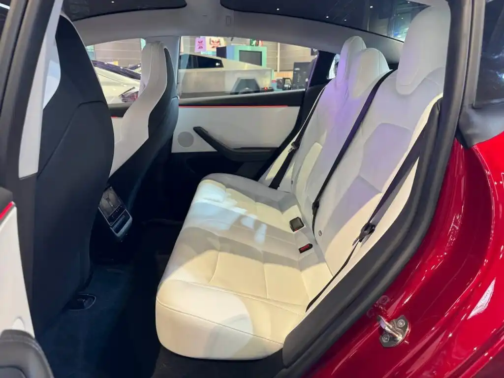 في الداخل، تتميز السيارة الجديدة بمقاعد رياضية ذات دعم جانبي أعمق لتحسين الدعم أثناء الانعطافات الحادة. المقاعد، التي تحتوي على حشوات خاصة، تعمل بالكهرباء وتأتي مع تدفئة وتهوية. كما تدعي تسلا أنها حسنت من عزل الضوضاء باستخدام زجاج صوتي بزاوية 360 درجة وعزل محسن للجسم.