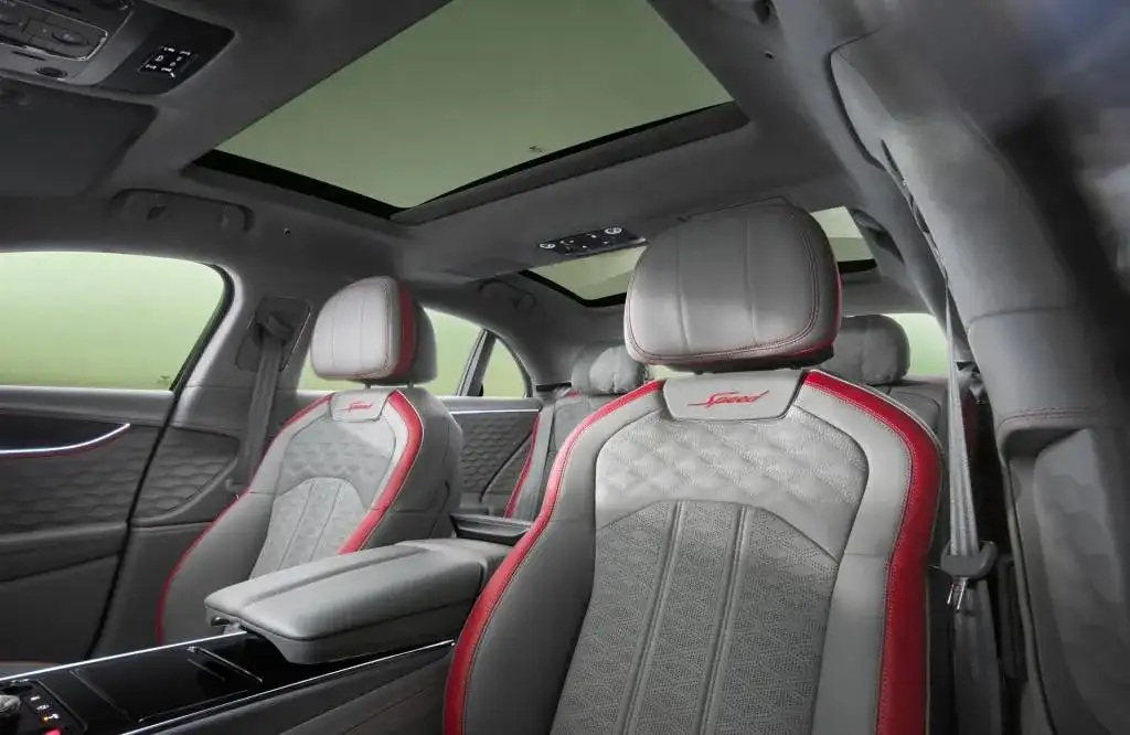 تقدم بنتلي أيضًا مواصفات مقاعد العافية لجميع المقاعد الأربعة. يقوم هذا بتعديل إعدادات المناخ للمساعدة في الحفاظ على درجة الحرارة المثالية للجسم مع تعديل الضغط على عضلات الركاب لضمان شعورهم بالراحة بعد قيادة طويلة. تشمل الخيارات الأخرى نظام صوتي Bang & Olufsen مكون من 16 مكبر صوت ونظام Naim مكون من 19 مكبر صوت مع محولات في المقاعد الأمامية.