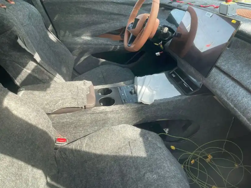 تكشف صور التجسس عن تصميم داخلي أنيق وبسيط، يتميز بشاشة مركزية دوارة وعجلة قيادة ثلاثية الأضلاع. يجمع الكونسول الوسطي بين لمسات اللاكر الأسود وتقليم الجلد الفاخر، مما يوفر مساحات تخزين كبيرة لتصميم متطور وعصري في نفس الوقت.