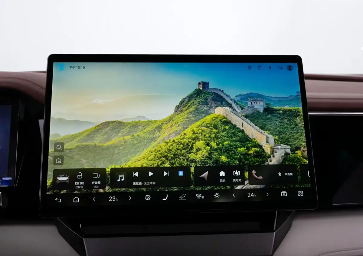 في الداخل، توفر BYD Xia تجربة رقمية أولى مع لوحة عدادات LCD رقمية بالكامل، وشاشة ركاب، وشاشة تحكم مركزية عائمة، وشاشة خلفية مثبتة على السقف. تدعم هذه الأنظمة وحدات تحكم ألعاب خارجية ونظارات الواقع المعزز (AR)، مما يسمح للركاب بمشاهدة الأفلام، ولعب الألعاب، أو الاستمتاع بالكاريوكي كعائلة.