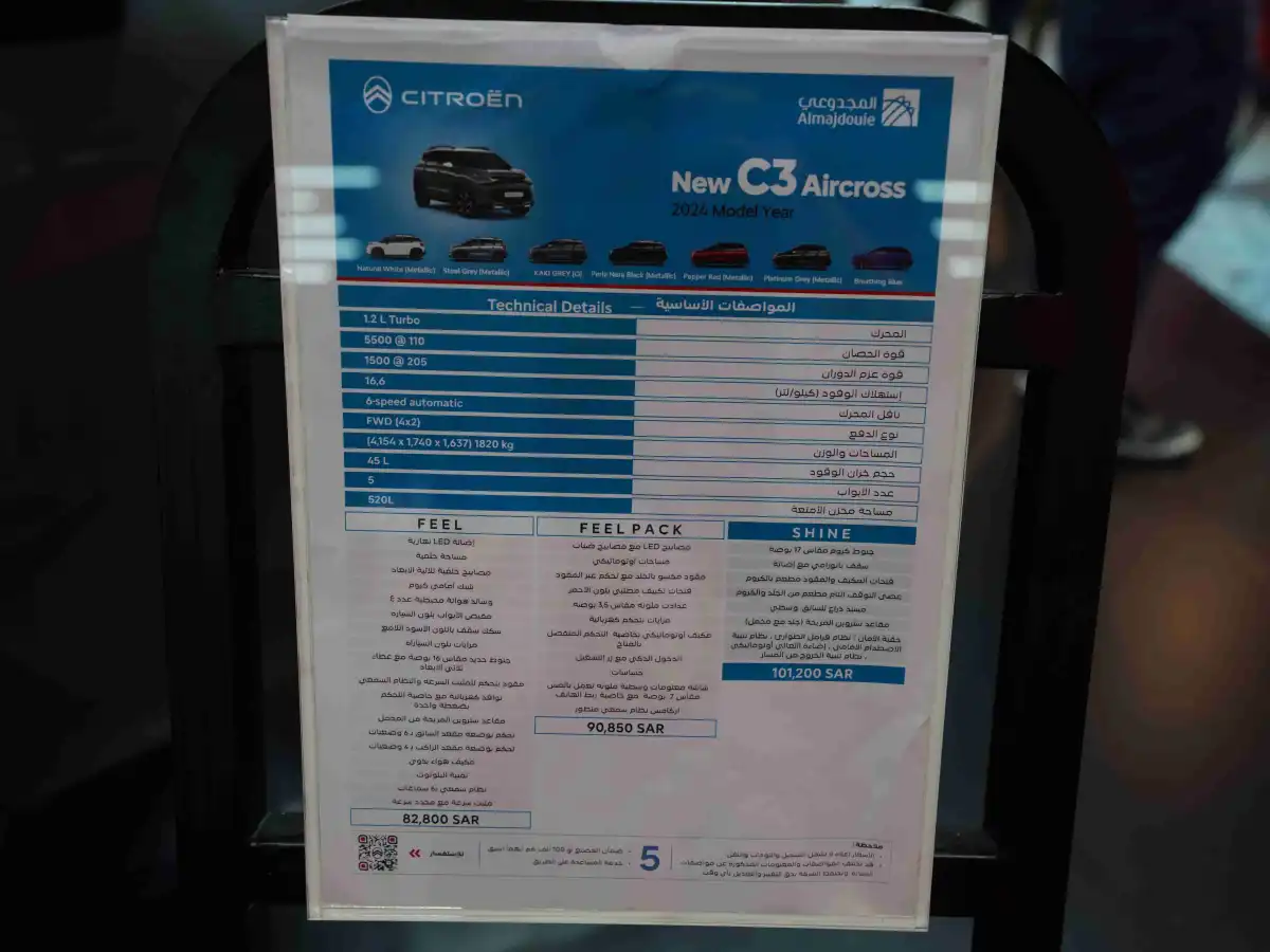 تم الكشف عن CITROËN C3 Aircross 2025 في معرض جدة الدولي للسيارات 2024، حيث جذبت الأنظار بتفاصيلها الخارجية والداخلية الجذابة.