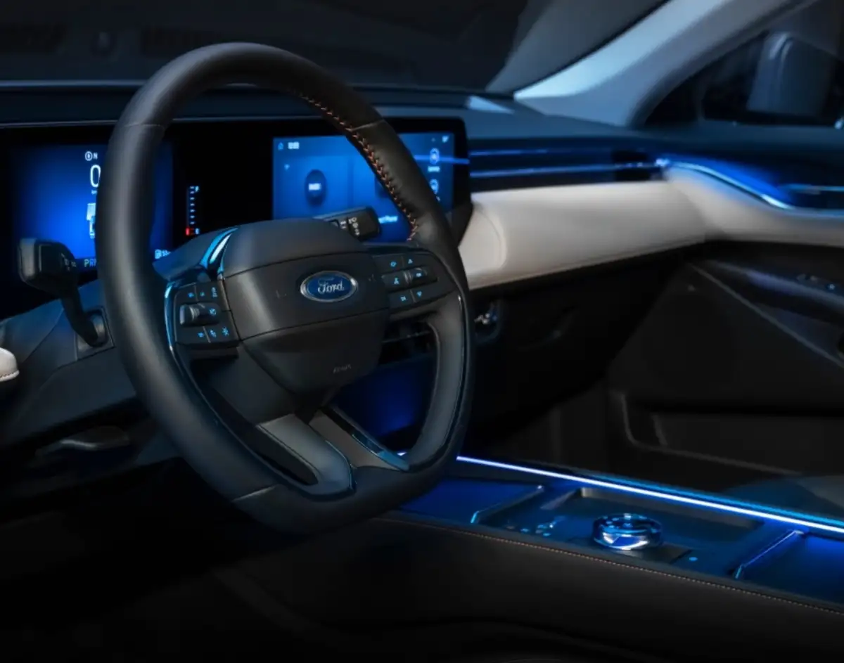ومع ذلك، فإن طراز تيتانيوم حصرياً للشحن اللاسلكي، مما يعزز الشعور التكنولوجي للسيارة. على لوحة العدادات، تحتوي جميع الطرازات الثلاثة على لوحة عدادات رقمية مقاس 8 بوصات توفر معلومات واضحة عن القيادة وحالة السيارة.