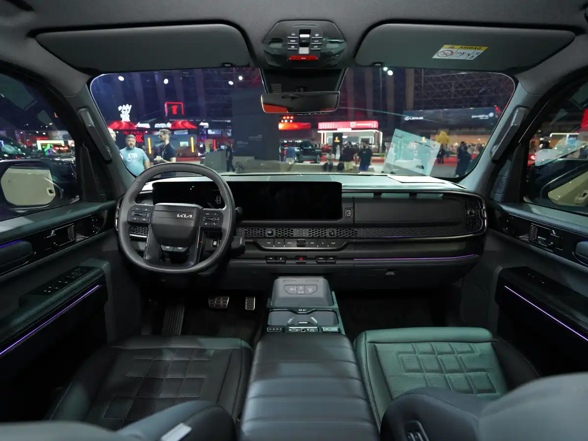 بعد ذلك، سننتقل إلى الداخل لفحص التصميم الداخلي لسيارة كيا تسمان 2025.