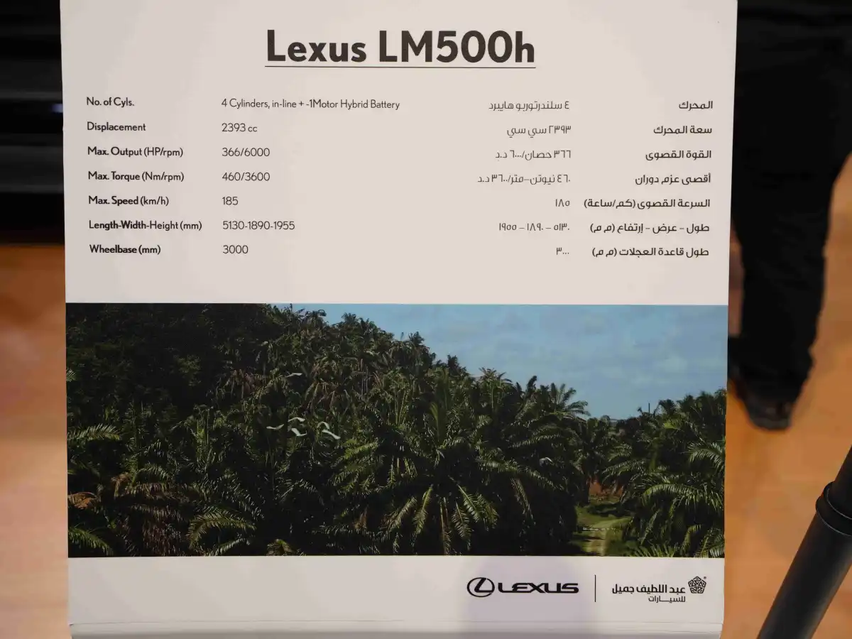 لمع نموذج لكزس LM 500h الجديد في المعرض بأدائه الاستثنائي وتصميمه الأخاذ الذي جذب اهتمام الكثير من الحضور، ويتميز النموذج المعروض بتكوينه المزود بأربعة مقاعد.