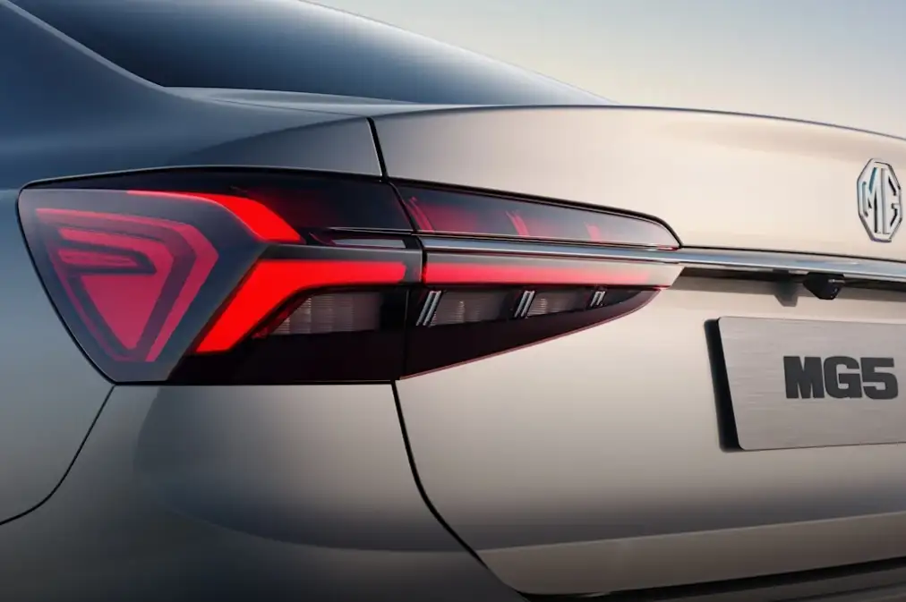في الجزء الخلفي، تتميز إم جي 5 بمصابيح خلفية حادة وأنابيب عادم مزدوجة ديكورية، مما يضفي لمسة من الأناقة. وعندما تُضاء المصابيح في الليل، تخلق تأثيرًا بصريًا لافتًا.