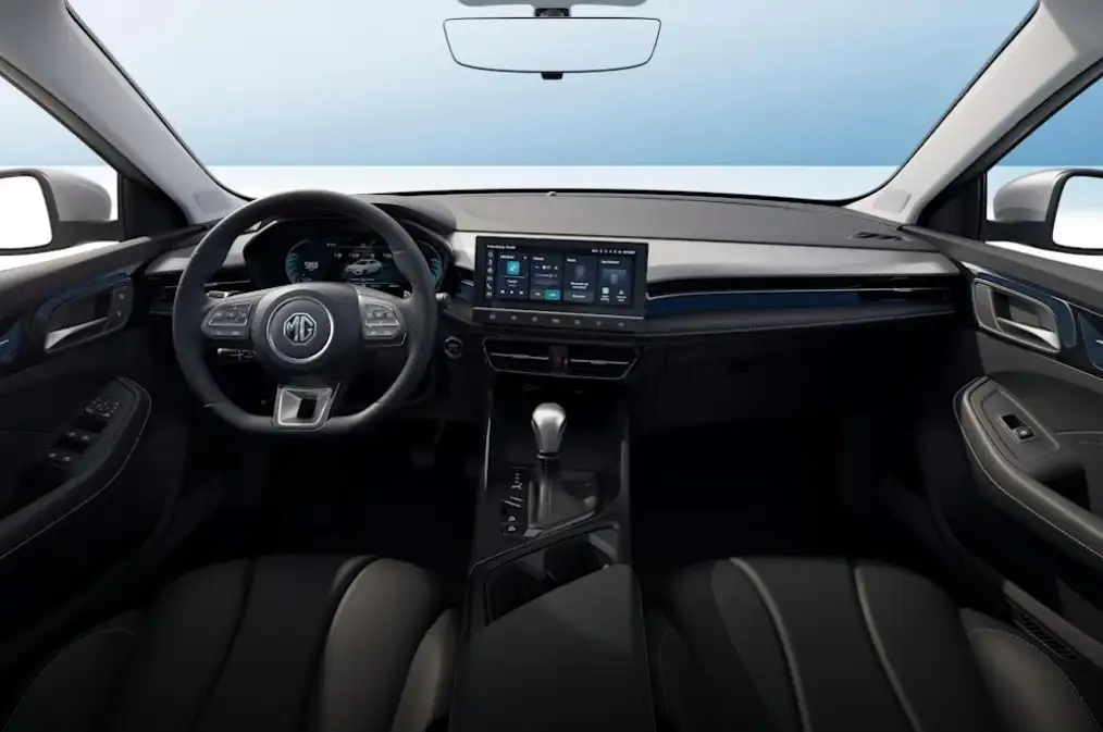 تتخلى إم جي 5 2025 عن التصميم التقليدي، حيث اعتمدت تخطيطًا غير متماثل يركز على السائق. تم استخدام مواد عالية الجودة مثل الجلد والتطريز في بعض الأجزاء لتعزيز الإحساس بالفخامة، مع طابع داخلي أسود مزين بتفاصيل من الكروم الفضي.