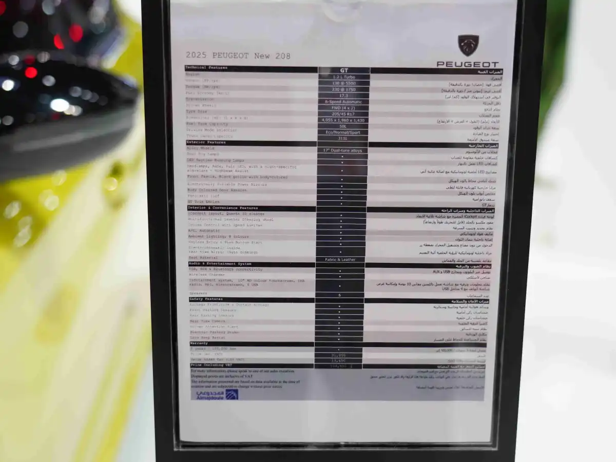 أخيرًا، دعونا نغوص في تفاصيل 2025 بيجو 208 لنرى إذا كانت تلبي احتياجاتكم السيارية.