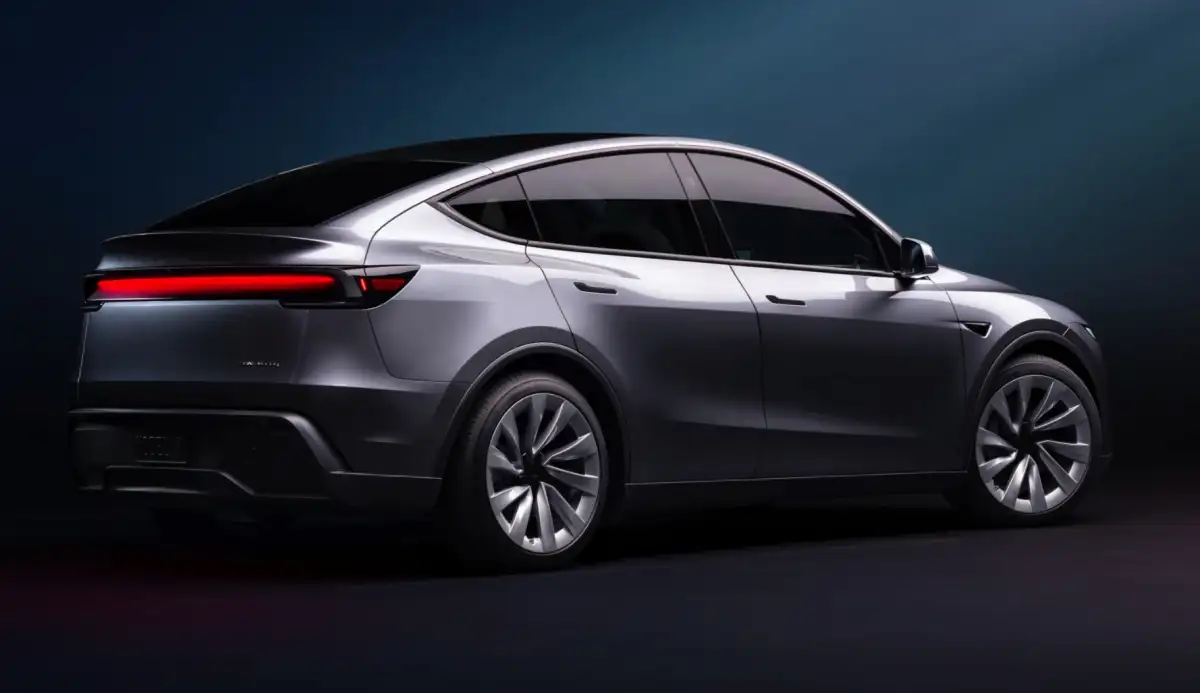 يعرض الملف الجانبي تصاميم محاور عجلات محدثة، والتي لا تزيد فقط من جماليات السيارة ولكن أيضًا تحسن الكفاءة الديناميكية الهوائية، مما يقلل من مقاومة الرياح. تماشيًا مع لقطات التجسس السابقة، تدمج موديل Y أيضًا شعار تسلا الإنجليزي في وسط مجموعة المصابيح، مما يضيف لمسة مميزة