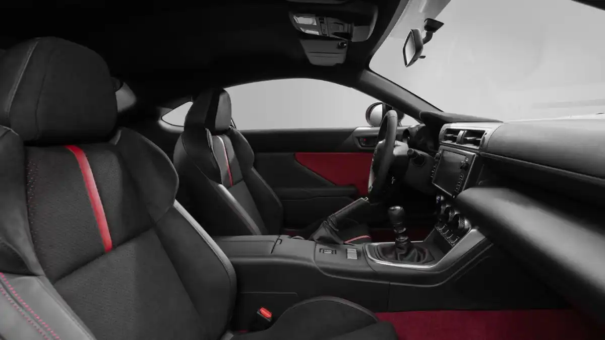 فبطبيعة الحال تتوفر السيارة اليابانية مع مقاعد رياضية حاضنة، لدعم حركة جسم القائد والركاب عند الانعطافات مع كسوة من جلد السويد يحيط بها كسوة من الجلد على أطراف المقعد، ويدعم مقعد السائق والراكب الأمامي ميزة التدفئة.