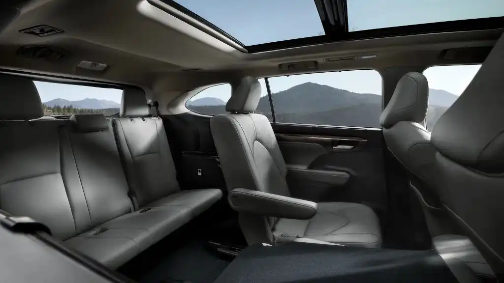 تأتي سيارة تويوتا هايلاندر 2025 التي تتسع إلى 7 أشخاص مع مقاعد بتصميم مريح مكسوة بالجلد أو القماش على حسب الفئة، فيما تدعم المقاعد عدة مزايا نذكر منها الآتي: