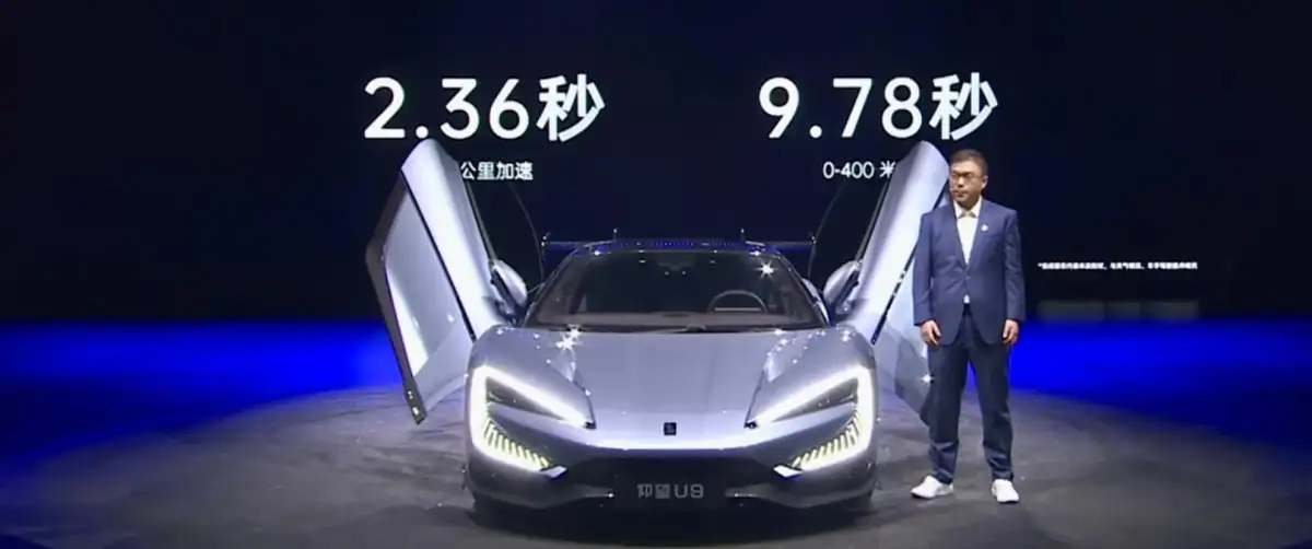 U9، التي تمثل Ultimate 9، تتمتع بنظام دفع رباعي، مما يمكنها من التسارع من 0 إلى 100 كم/ساعة في 2.36 ثانية، وقدرتها على قطع مسافة ربع ميل في 9.78 ثانية. يمكن للمحرك الكهربائي أن يدور بسرعة تصل إلى 21000 دورة في الدقيقة. من المثير للاهتمام، أنه على عكس السيارات الفاخرة الأخرى، فإن U9 ليست مجهزة ببطاريات كيمياء NCM، بل تحتوي على بطارية من فوسفات الحديد الليثيوم (LFP) من بي واي دي.