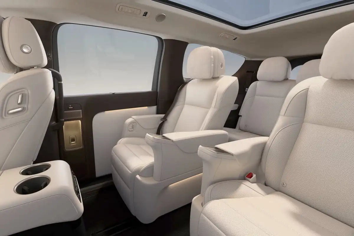السائق والراكب الأمامي يمكنهما أيضًا الاستمتاع بميزة التدفئة والتهوية، بينما يمكن لركاب الصف الثاني الاستمتاع بدعامات الساق الدافئة وتدفئة المقاعد. يمكن تعديل المقصورة حسب الطلب. الصفوف الثاني والثالث توفر أيضًا خيارات تخزين، ويمكن تركيب فراش في الجزء الخلفي.