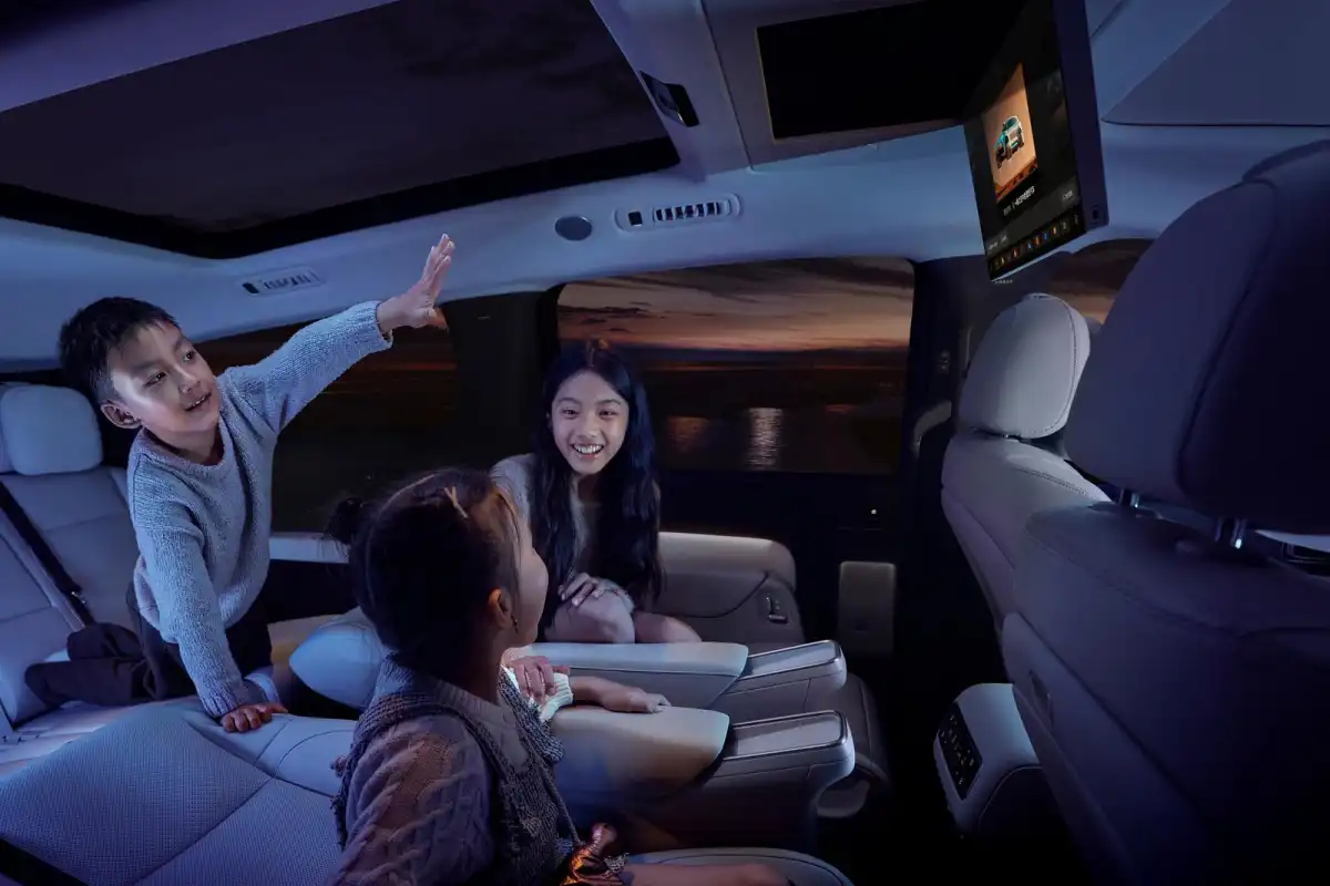 قمرة الركاب مزودة بتنجيد من جلد النابا بألوان البني والأبيض، مع جميع وسائل الراحة الضرورية. الداخل مصمم بترتيب مقاعد 2-2-3. يتمتع ركاب الصف الخلفي بأفضل تجربة مشاهدة لأنظمة الترفيه الخلفية وشاحن لاسلكي متاح لهم، وتحتوي جميع الصفوف الثلاثة على تكييف هواء وخاصية تدليك المقاعد بالإضافة إلى إمكانية تعديل المقاعد كهربائياً.