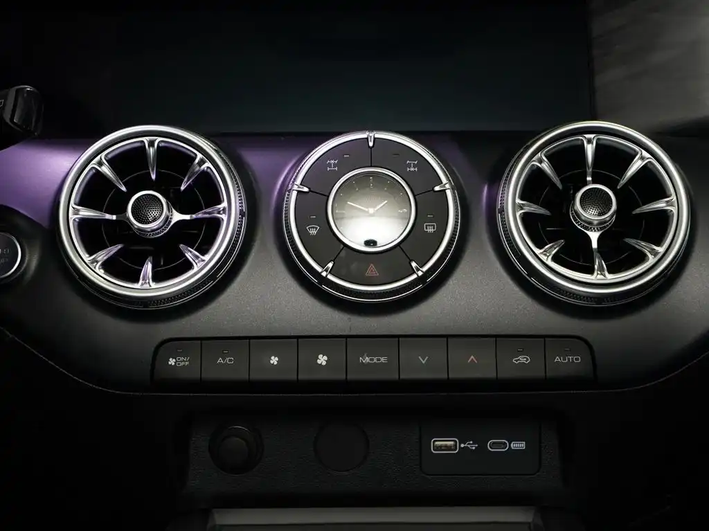وتتميز المصابيح الأمامية الدائرية الأمامية بأنها عتيقة وأنيقة، مع شريط ضوئي يمتد في المنتصف، والخطوط الجانبية للسيارة ناعمة.