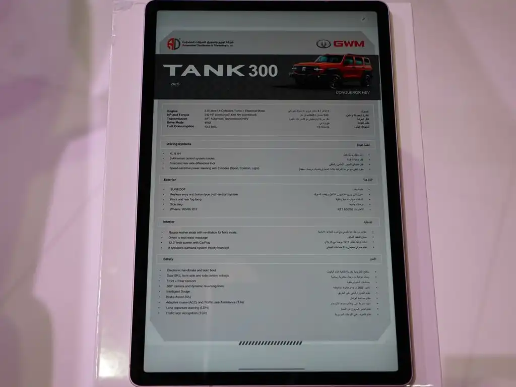 تُعد تانك 300 خياراً مثالياً لعشاق الطرقات الوعرة في سوق السيارات السعودية بفضل أدائها الممتاز على الطرقات الوعرة ومزاياها الفاخرة. بعد ذلك، دعنا نستكشف سيارة تانك 300، سيارة الدفع الرباعي الشهيرة للطرق الوعرة في المملكة العربية السعودية، في معرض جدة الدولي للسيارات 2024.