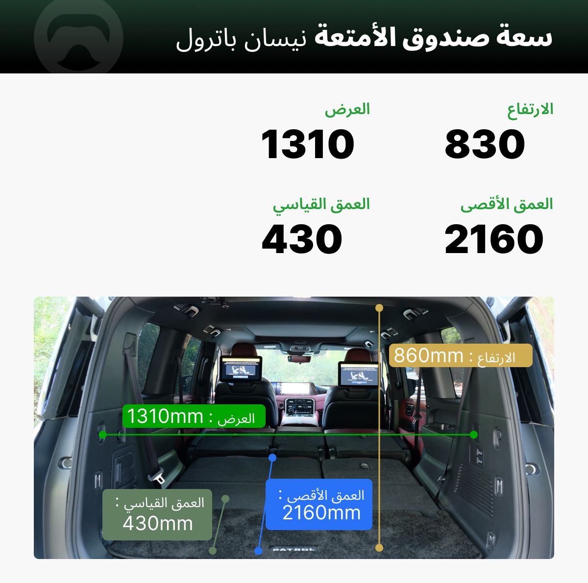 وفي تقييم مساحة التحميل، حصلت نيسان باترول على 7 نقاط.