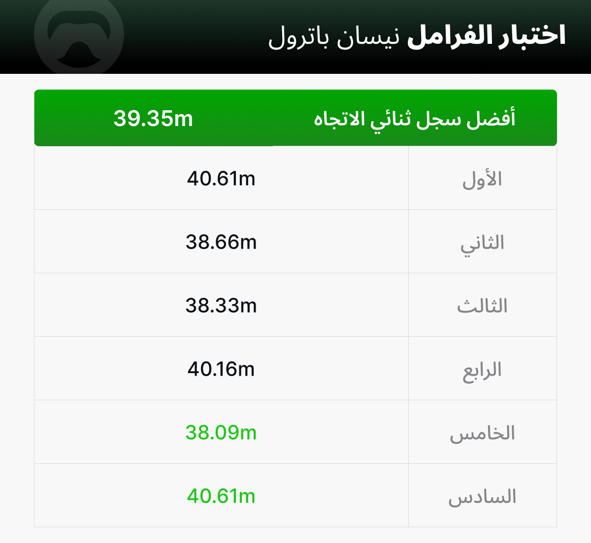 - اختبار فرامل باترول: 6 نقاط / 39.35 متر