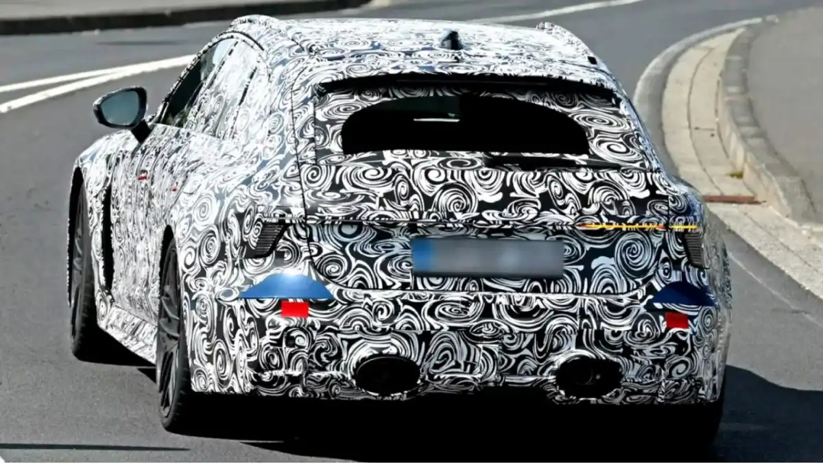 مؤخرة السيارة مزودة بمخارج عادم ضخمة على شكل بوميرانج وشريط إضاءة رفيع يربط بين مصابيح LED الخلفية.