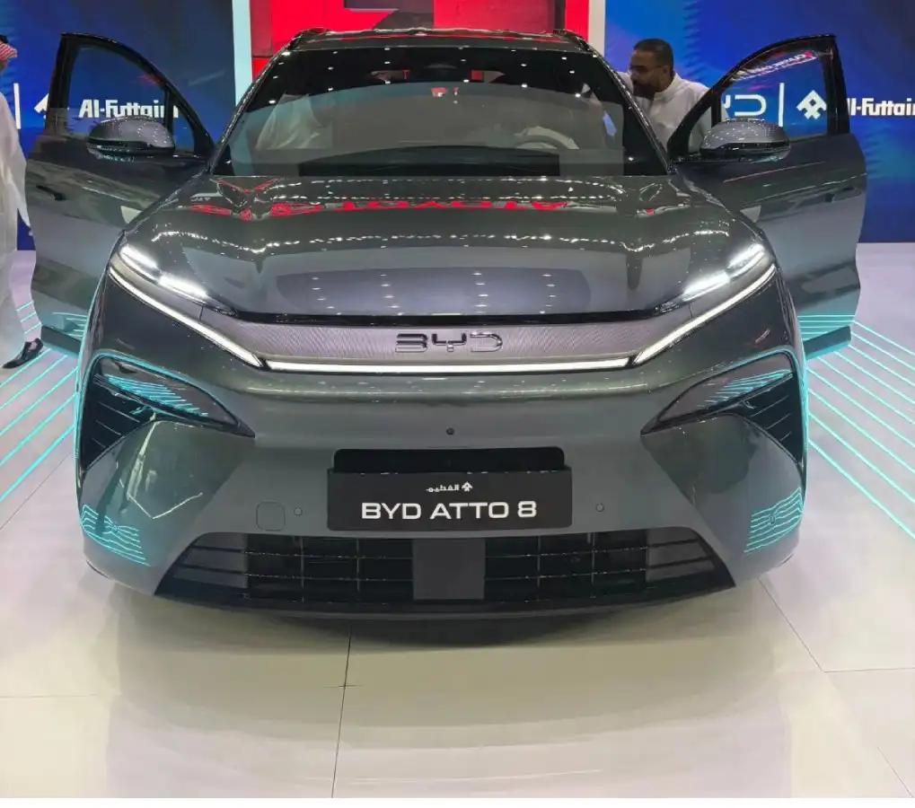 قدّمت BYDمصر بي واي دي الإمارات بي واي دي السعودية بي واي دي عُمان بي واي دي البحرين بي واي دي قطر بي واي دي الكويت بي واي دي طراز ATTO 8 خلال معرض الرياض للسيارات بوصفه SUV هجينة كبيرة الحجم موجهة للعائلات، مع حضور قيادات الوكيل في السعودية وقيادات الشركة من الصين، في إشارة واضحة لأهمية السوق المحلي ضمن استراتيجية التوسع الإقليمي. السيارة جاءت لتملأ فجوة بين السيارات الهجينة المدمجة وبين الـSUV الكبيرة ذات الثلاثة صفوف، مركزة على الكفاءة والمساحة والتقنيات المتقدمة.