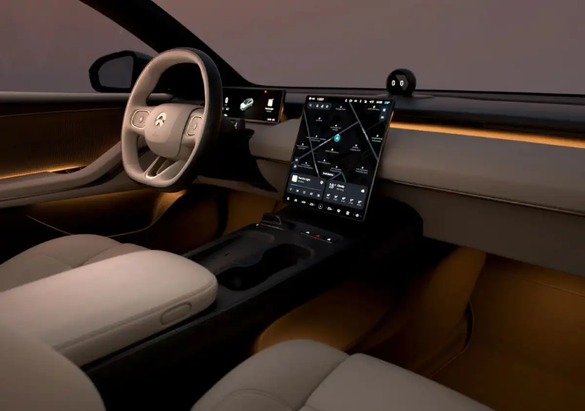من حيث التصميم الداخلي، تتميز سيارة نيو اي تي 5 بطابعها المستقبلي البسيط، حيث تُبرز لغة تصميم NIO المميزة بخطوطها فائقة الأناقة، وشاشة مركزية عائمة، ومزيجها الفاخر من المواد. مع تصميمها البسيط جداً، تشعر بأن المقصورة هادئة ومريحة نظرياً، ولكنها غنية بالتقنيات، وتتوفر مع مساعد NIO الإفتراضي NOMI المدعوم بالذكاء الإصطناعي، بالإضافة إلى إضاءة محيطة تتكيف مع المزاج أو وضعية القيادة.