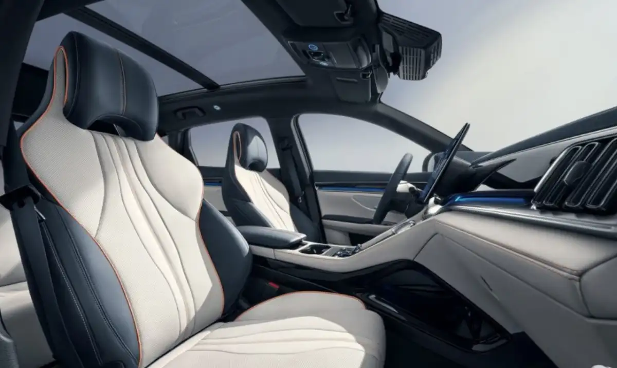 المقصورة تعتمد شاشة مركزية ضخمة بقياس 15.6 بوصة تدعم الاتصال الذكي، وتتكامل مع عدادات رقمية 12.3 بوصة تعرض بيانات الأداء بوضوح مرتفع. كما يوجد نظام HUD بروجيكتور يعرض بيانات القيادة على الزجاج الأمامي لتجربة مستقبلية أكثر أماناً.