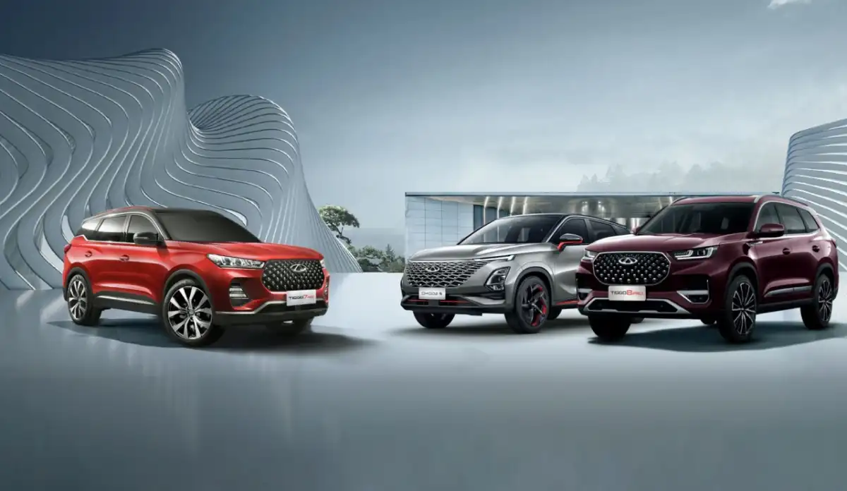 خمس موديلات SUV جاهزة—تيجو 4 برو، تيجو 7 ماكس، تيجو 8 برو ماكس، تيجو 9، جميعها بأنظمة أمان ذكية ودعم فني كامل.