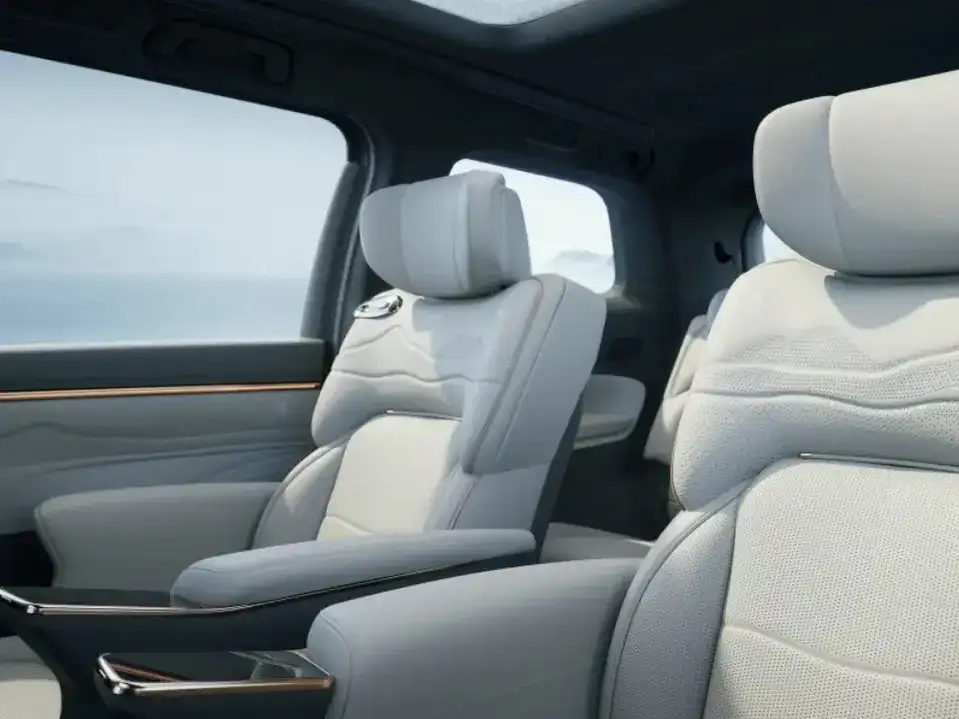 وتكتمل الأجواء الداخلية بوجود إضاءة محيطية متعددة الألوان تضفي طابعًا فخمًا على المقصورة، بالإضافة إلى مرآة رؤية خلفية رقمية تدعم عرض الفيديوهات، وستائر شمسية مخصصة لنوافذ الصف الثاني، إلى جانب نظام تكييف أوتوماتيكي ثلاثي المناطق يضمن توزيع الهواء بشكل مثالي لجميع الركاب، مع فلتر PM2.5 لتنقية الهواء الداخلي.
