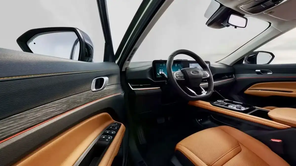 توفر المقصورة الداخلية مساحة رحبة تتسع لخمسة ركاب، وتأتي بتنجيد جلدي صناعي في الفئات الأساسية، بينما تتميز فئة Titanium بجلد فاخر ولمسات راقية تعزز من تجربة الجلوس. كما حصلت جميع الفئات على شاشة ترفيه قياس 12 بوصة تدعم الاتصال مع أبل كاربلاي وأندرويد أوتو.