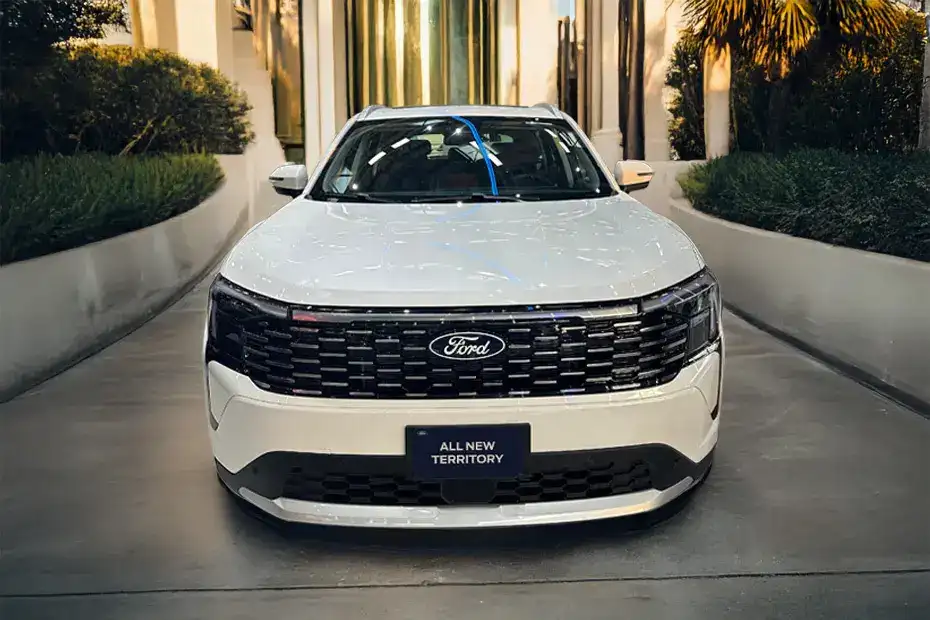 اعتمدت فورد تيريتوري 2026 واجهة أمامية بتصميم أكثر جرأة، حيث تميزت المصابيح الأمامية بتقنية LED ذات خطوط حادة، بالإضافة إلى شبك أمامي واسع يضفي مظهرًا أكثر قوة، مع لمسات كرومية أنيقة تظهر في الفئات الأعلى. هذه التفاصيل منحت السيارة طابعًا عصريًا يعكس جديتها على الطريق.