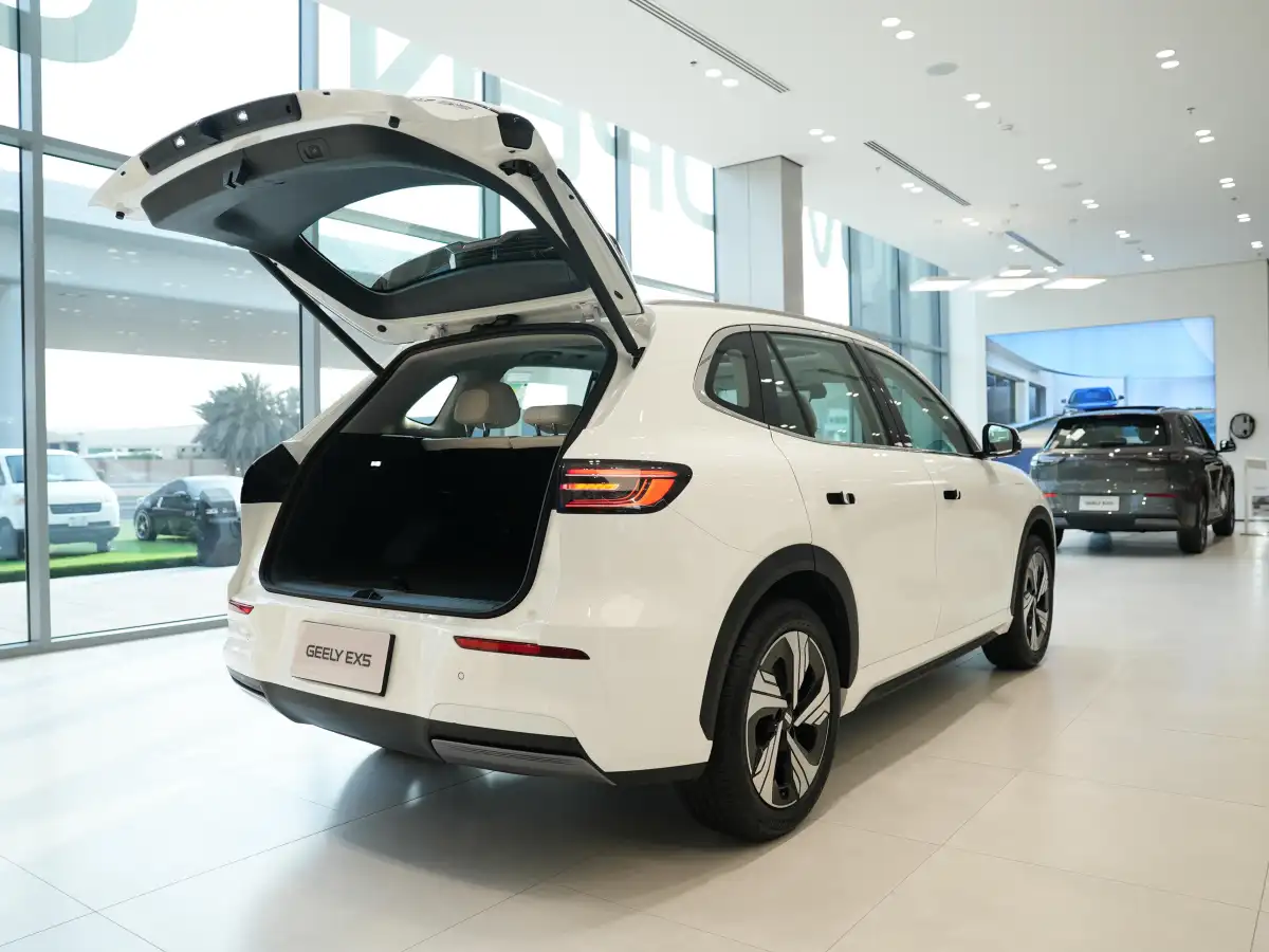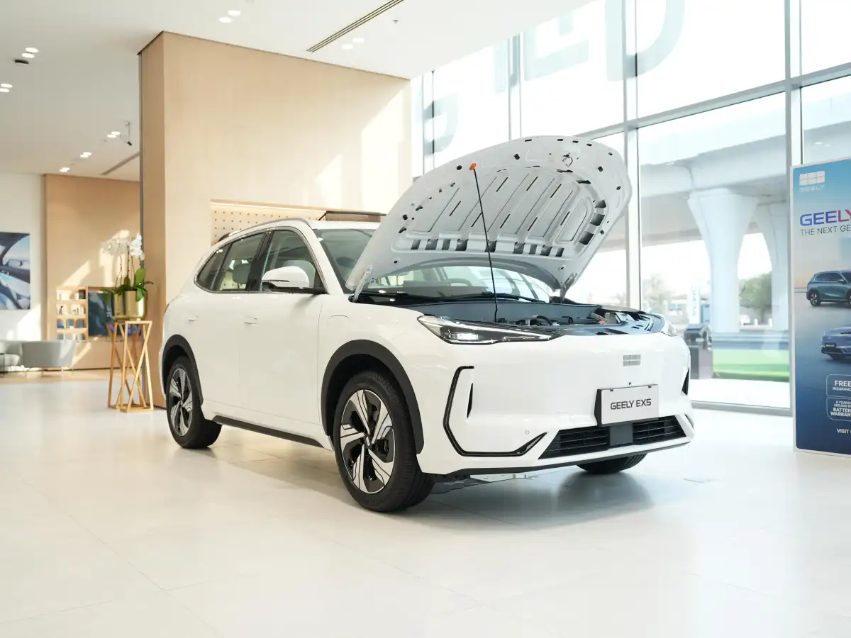 تمتع جيلى EX5 بشكل جسدي جريء وعضلي يتناغم بعمق مع ثقافة السيارات في الإمارات العربية المتحدة. وجهه الأمامي - يضم شباك فوهة واسعة ومرايات LED منقسمة وقبة منحوتة - يشع الثقة التي تتطلبها الطرق الشرقية الأوسطية.