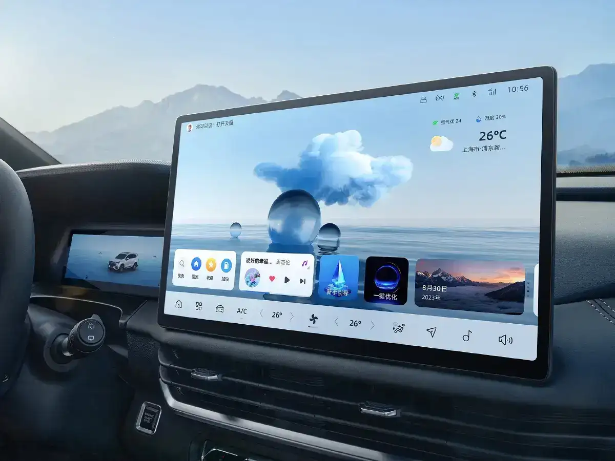 كما زودت المقصورة بنظام تكييف أوتوماتيكي ثنائي المناطق مع فتحات خلفية وفلتر غبار يحافظ على نقاء الهواء داخل السيارة. وتبرز التكنولوجيا من خلال: