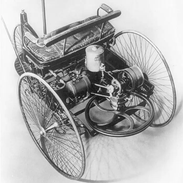 في 29 يناير 1886 حصل كارل بنز، المهندس الألماني من مدينة مانهايم، على براءة اختراع لمركبته ذات الثلاث عجلات المزودة بمحرك أحادي الأسطوانة يعمل بالبنزين، وبسعة تقارب 1.0 لتر وقوة حوالي 0.75 حصان.