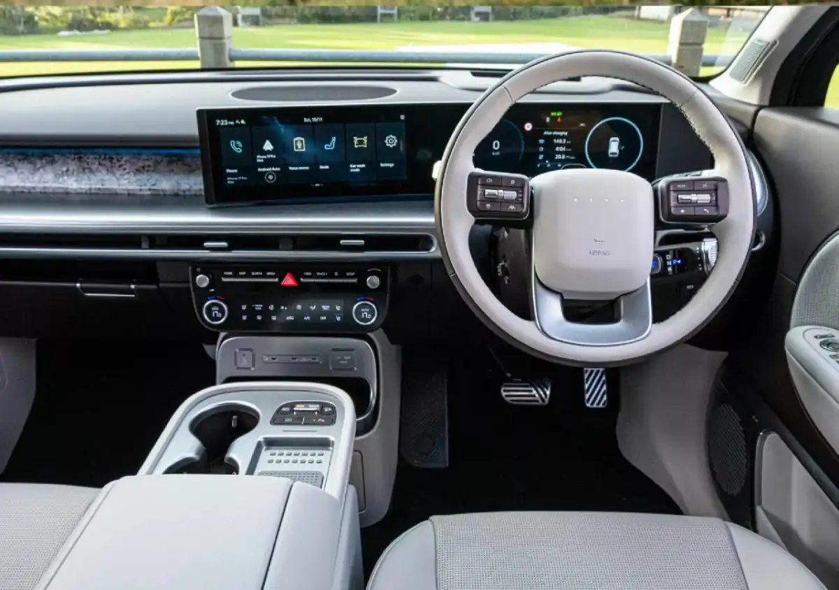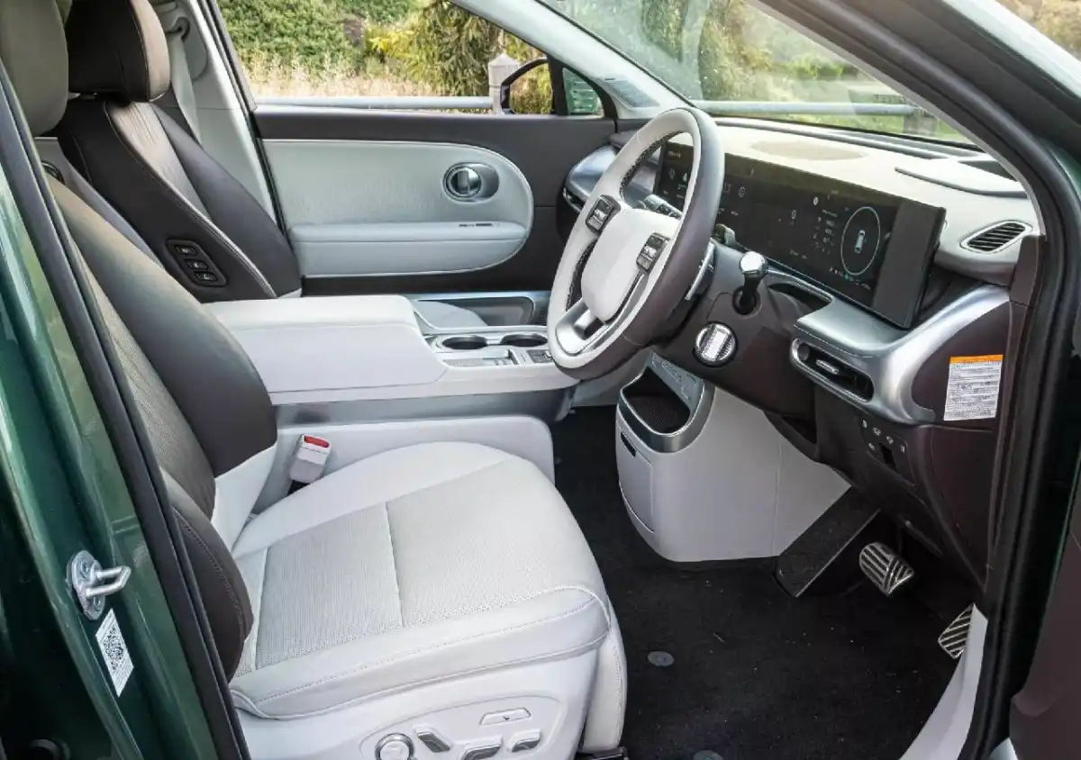 استخدام جيد للمواد الناعمة، مع تقليل البلاستيك الصلب مقارنة بـ EV9، ما يعطي إحساسًا بأن المقصورة أكثر رقيًا قليلًا رغم مشاركة كثير من المكونات مع سانتافي وباليسيد.