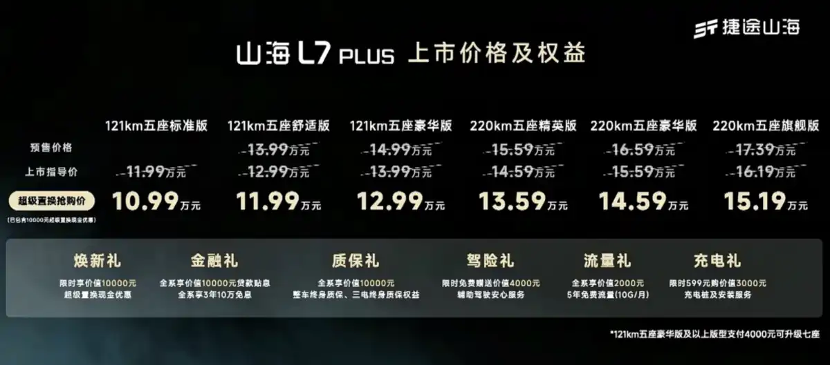 السيارة الجديدة تطرح في ست فئات مختلفة بأسعار تبدأ من 119,900 يوان صيني (16,800 دولار - 61,760 ريال) وتصل إلى 161,900 يوان (22,700 دولار - 83,394 ريال). وتوفر خيار المقاعد الخمسة أو السبعة، مع مدى قيادة شامل يصل إلى 1,700 كيلومتر، ما يجعلها منافسة قوية في سوق الاس يو في الهجينة القابلة للشحن.