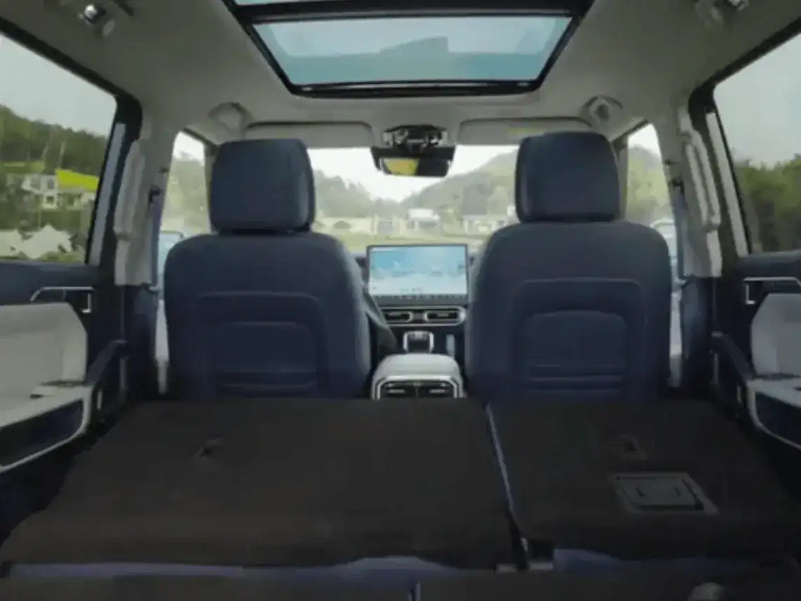 يقدّم التصميم الداخلي لمقصورة السيارة طابعًا عصريًا يلبّي تطلعات العائلات الباحثة عن الراحة والتكنولوجيا، حيث تحتوي على شاشة مركزية عائمة، ونظام تشغيل بضغطة زر، وناقل حركة إلكتروني، بالإضافة إلى فتحات تكييف مخصصة للصفين الثاني والثالث.