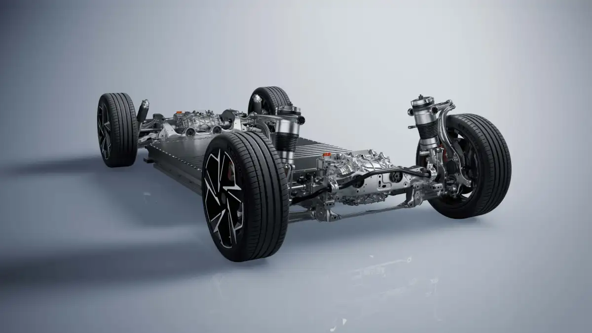 كما تم تجهيز السيارة بنظام التعليق الهوائي ثنائي الحجرات + نظام التخميد المتغير باستمرار الذي يتم التحكم فيه إلكترونياً CCD، حيث يمكن لنظام التعليق الهوائي ثنائي الحجرات تغيير ارتفاع السيارة وصلابة التعليق بشكل مستقل، بينما يتكيف نظام التخميد المتغير باستمرار الذي يتم التحكم فيه إلكترونياً CCD بشكل ديناميكي مع مجموعة متنوعة من ظروف الطريق مع استجابة في أجزاء من الثانية لتوفير تجربة قيادة سلسة ومريحة.