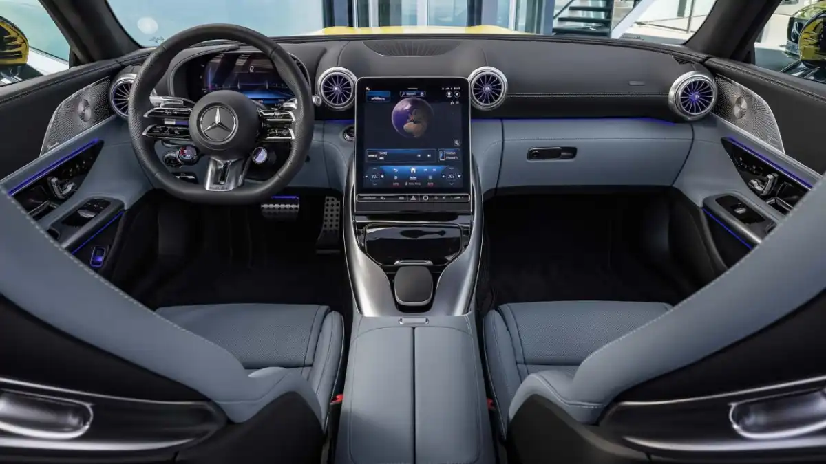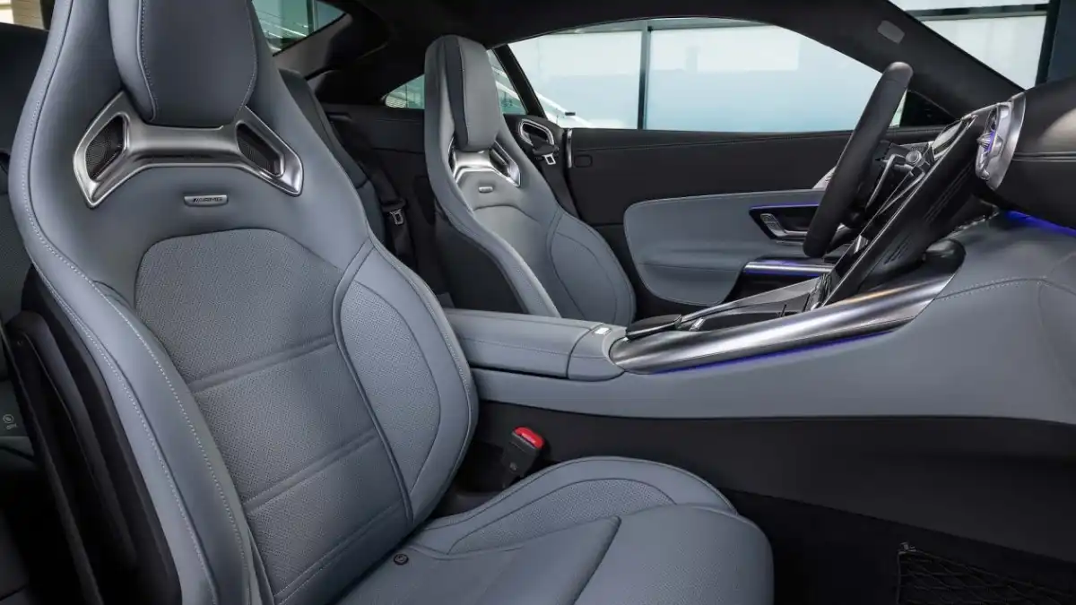 تتميز المقصورة الداخلية للكوبيه الألمانية بلوحة عدادات رقمية بحجم 12.3 إنش وشاشة لمسية بحجم 11.9 إنش لنظام الترفيه، مع مقاعد رياضية من AMG مغطاة بجلود نابا الفاخرة.