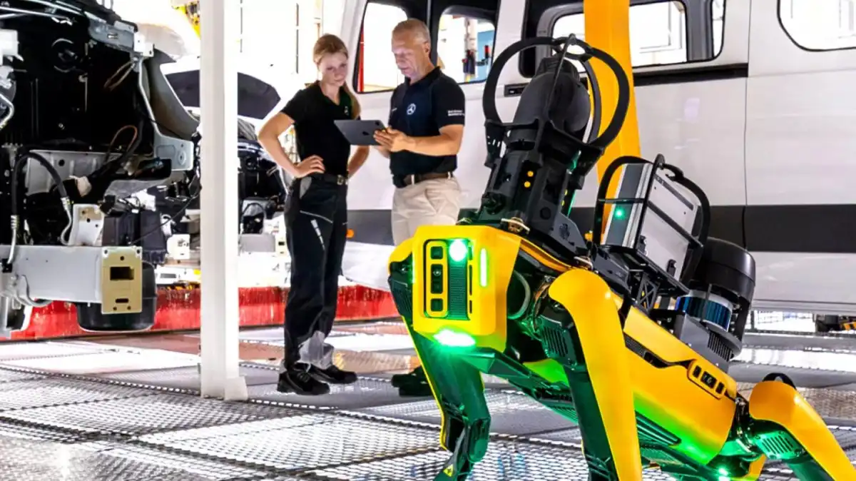 تواصل شركة "مرسيدس-بنز" الألمانية ريادتها في مجال الابتكار، ولكن هذه المرة بطريقة غير معتادة. ففي مصنع الشركة لتجميع سيارات النقل في مدينة دوسلدورف، انضم موظف غير بشري إلى الفريق — روبوت كلب يحمل اسم "آريس" من تطوير شركة Boston Dynamics الأمريكية، ليصبح جزءًا من منظومة الثورة الرقمية الجديدة لدى مرسيدس. هذا الكلب الآلي لا يأكل، لا ينام، ولا يطالب بزيادة في الراتب، لكنه يساعد الشركة على توفير مئات الآلاف من الدولارات سنوياً من خلال مهاراته الفريدة في الكشف عن الأعطال وتوفير الطاقة.