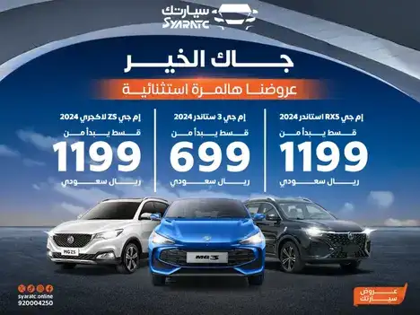 أقساط شهرية استثنائية للحصول على أحدث طرازات إم جي مع عروض السيارات المُقدمة من شركة سيارتك، ويشمل هذا العرض كل من الطرازات التالية: ام جي RX5 Standard 2024: قسط شهري يبدأ من 1,199 ريال ام جي 3 Standard 2024: قسط شهري يبدأ من 699 ريال ام جي ZS Luxury 2024: قسط شهري يبدأ من 1,199 ريال وغيرها الكثير من الطرازات الأخرى يُمكنك الاستفادة من هذا العرض من خلال النقر على زر قدم طلب تمويل وتعبئة نموذج الطلب، وسوف يقوم أحد ممثلي الشركة بالتواصل معك في أقرب وقت ممكن لإبلاغك بالخطوات والإجراءات التالية (تطبق الشروط والأحكام).اقرأ أقل