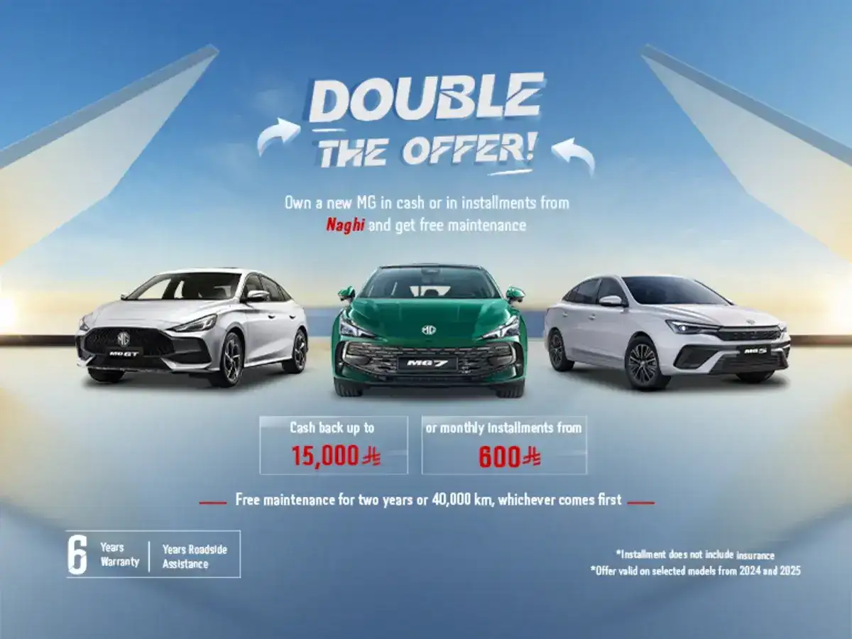 أعلنت إم جي بالتعاون مع وكيلها الرسمي في المملكة، جياد الحديثة للسيارات، عن إطلاق حملة ترويجية مميزة تحت شعار "العرض أصبح عرضين" خلال شهر يوليو 2025، مستهدفة مجموعة كبيرة من موديلات 2024 و2025. وتشمل الحملة باقة من المزايا الجاذبة تشمل كاش باك يصل إلى 15000 ريال سعودي، وصيانة مجانية لمدة عامين أو 40,000 كم، بالإضافة إلى ضمان ممتد حتى 6 سنوات أو 200,000 كم وخدمة مساعدة على الطريق مجانًا.