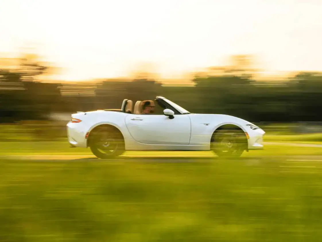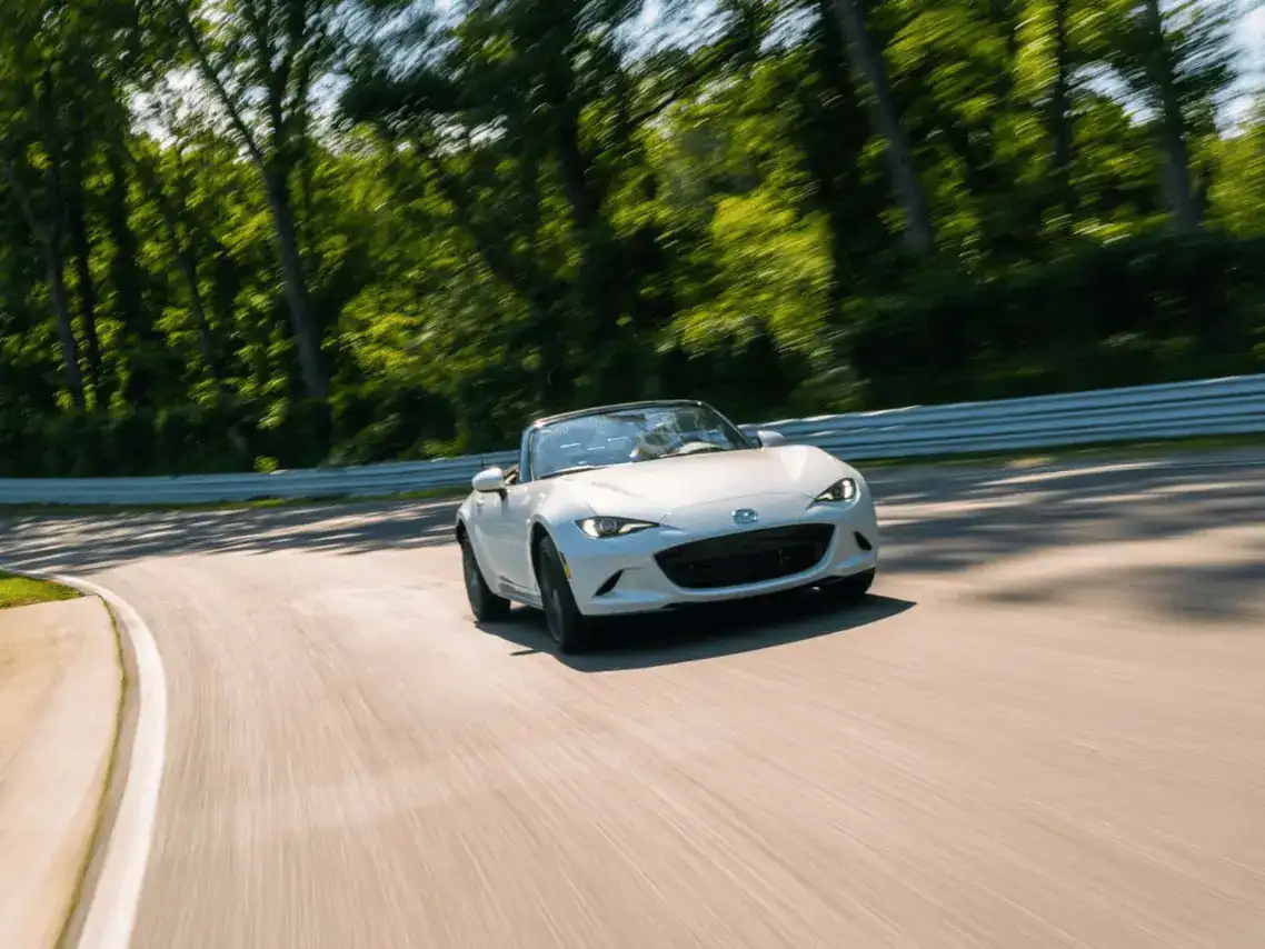 وضعت مازدا نصب أعينها أن تتماشى المياتا مع التضاريس الخلفية المتعرجة، فاختارت نظام تعليق ناعم يمتص النتوءات ويمنح الركاب راحة ملحوظة. دعم ذلك نظام التحكم في الوضع الحركي المعروف باسم KPC الذي يحد من الأرجحة الجانبية في المنعطفات عبر الضغط على العجلة الداخلية الخلفية، في حين حصلت نسخة ND3 على فرق محدود للانزلاق غير متناظر يعزز الثبات عند الخروج من الزوايا الحادة. نتج عن هذا المزج قدرةٌ على امتصاص صدمات الطرق الوعرة مع ديناميكية استجابة، ما يجعل المشوار على الطرق الخلفية تجربةً سلسة وممتعة.