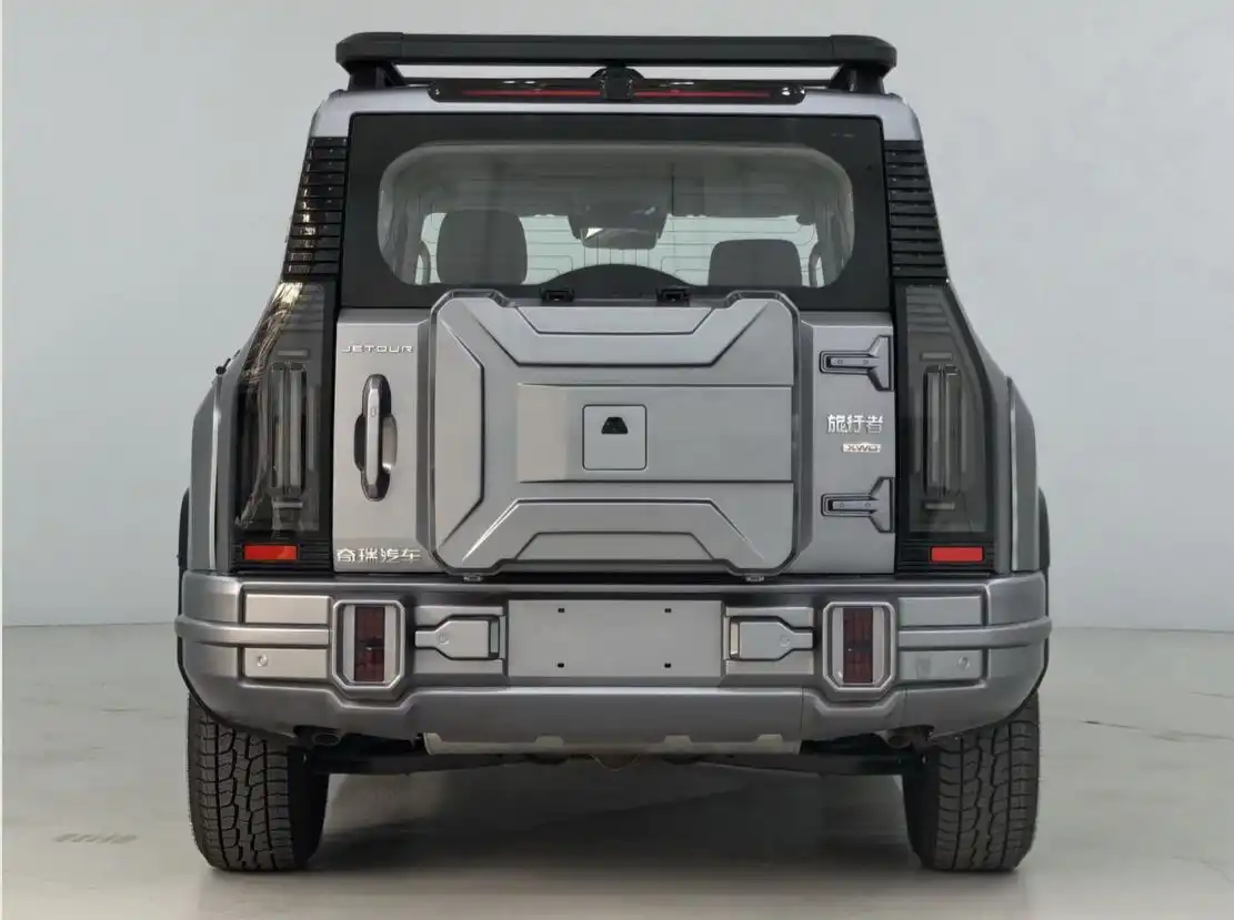 يتسم تصميم السيارة في المقدمة بالحداثة، مع صادم وشبكة أمامية جديدة، ومصابيح أمامية مستطيلة باللون الأسود. تم نقل شعار “JETOUR” إلى أعلى الشبكة وطلائه باللون الأسود، مما يحافظ على شكل السيارة الصندوقي.