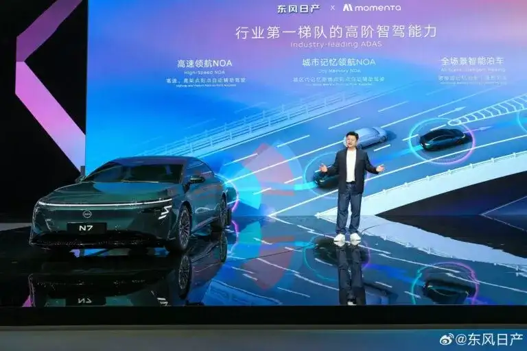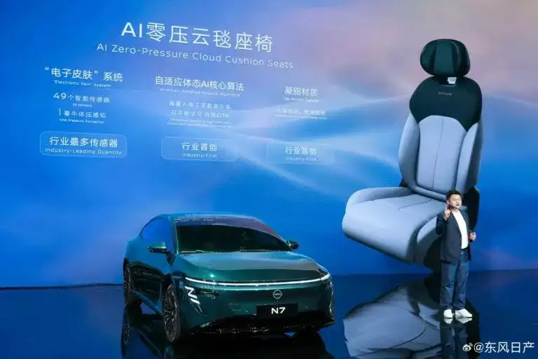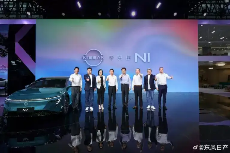 في معرض قوانغتشو للسيارات، قدمت نيسان، بالشراكة مع دونغفينغ، سيارة إن 7 الكهربائية الجديدة. تتميز هذه السيدان متوسطة الحجم بتصميم أنيق مستوحى من الطراز التجريبي السابق، إيبوك، وتظهر بشكل مذهل. الواجهة الأمامية بسيطة وعصرية، مزودة بشريط إضاءة رفيع ومصابيح أمامية تشبه الأنياب، بالإضافة إلى مدخل هواء سفلي واسع وشعار نيسان المضيء.
