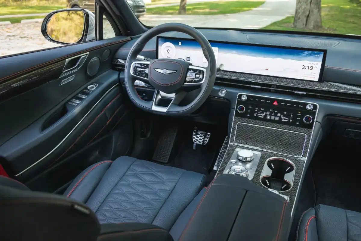 تعد جينيسيس G90 أفخم ما قدمت العلامة الكورية حتى الآن، حيث صُممت لتنافس مباشرة كبار العلامات الأوروبية في فئة سيارات الصالون الفارهة. تعكس السيارة فلسفة التصميم الراقية لجينيسيس من خلال خطوطها الانسيابية الطويلة وتفاصيلها الدقيقة التي تبرز الرفاهية في كل زاوية. المقصورة الداخلية تمثل تحفة فنية، حيث تتوفر بمواد فاخرة تشمل الجلد الطبيعي والخشب الحقيقي، مع أنظمة راحة متقدمة تجعل كل رحلة تجربة من الطراز الأول.